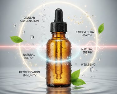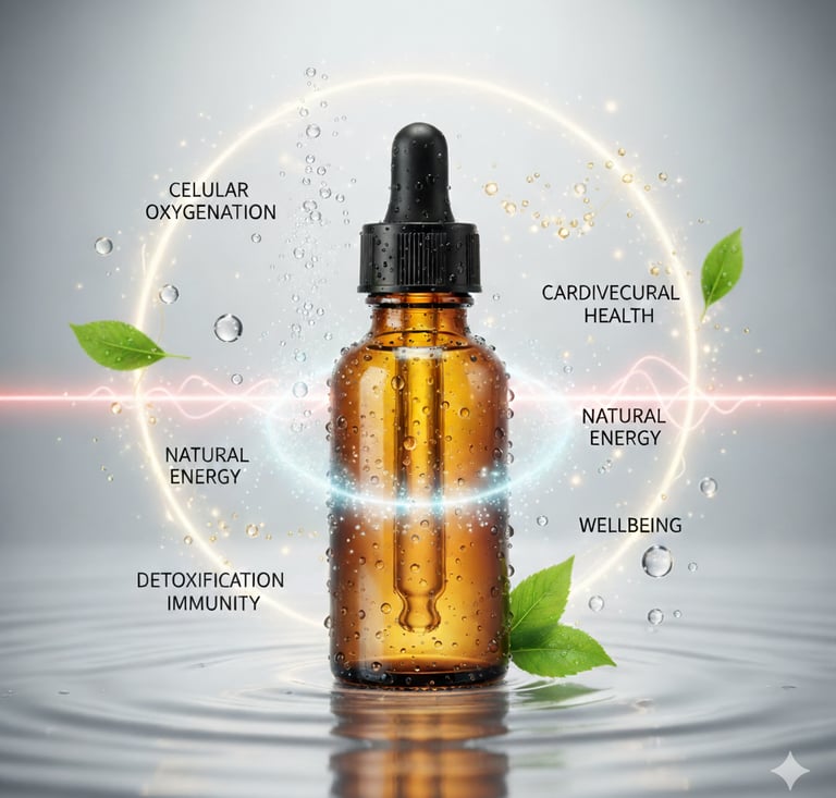 Es un suplemento alimenticio líquido que aporta oxígeno activo al organismo para mejorar la salud y vitalidad.