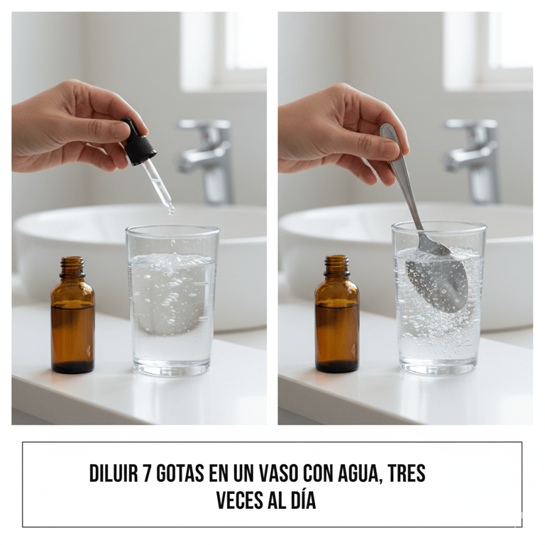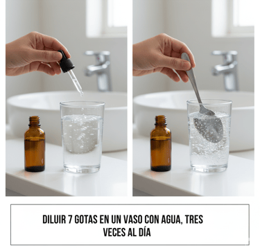 Diluye 7 gotas en un vaso con agua, tres veces al día, según las indicaciones del envase.