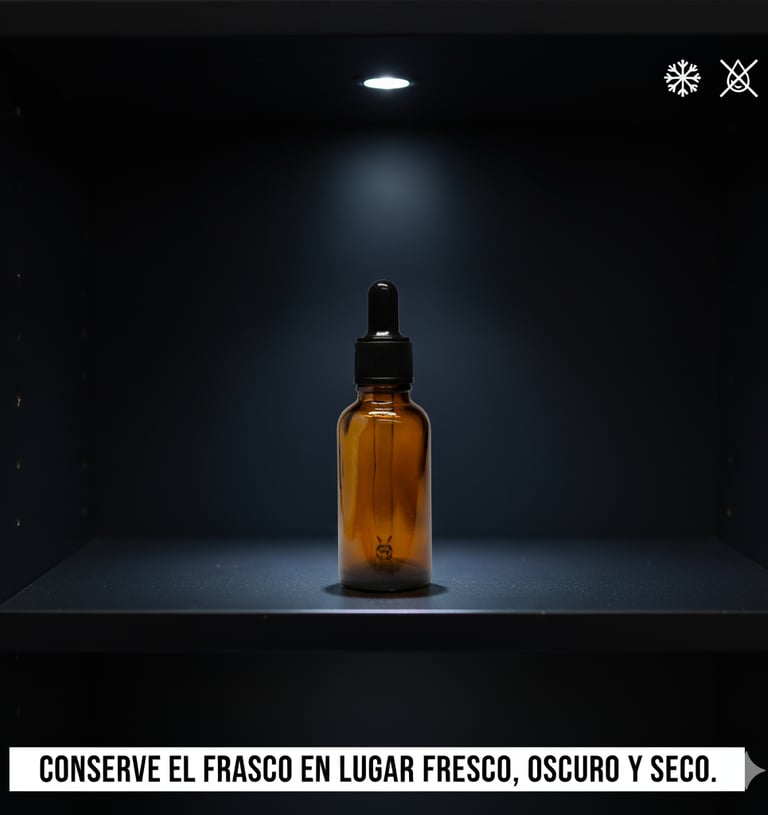 Envasado en frasco ámbar que conserva la estabilidad del producto.